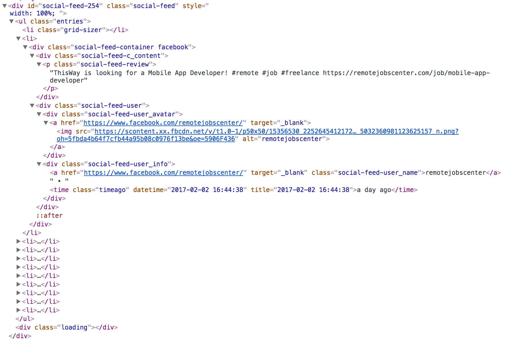 Plugin is wrapped inside a class '.social-feed' and has a unique ID 'social-feed-{ID}' so it should not interfere with your website's styling. Inside there is a list of posts/tweets in a simple unordered list format. Classes are prefixed with 'social-feed-'.