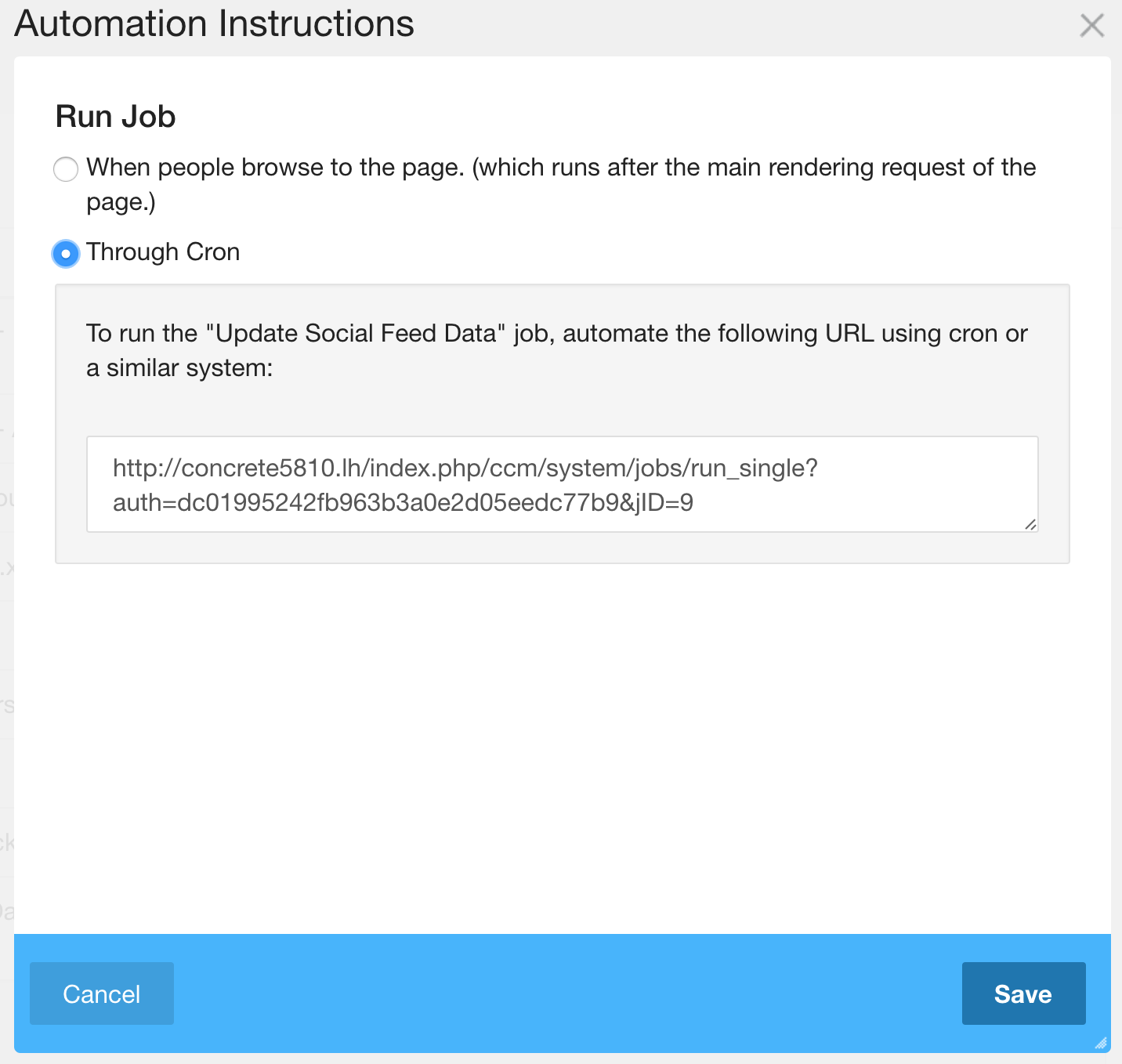 I am using an automated job to update data- select this checkbox if you are using a cron job to fetch new posts. More info